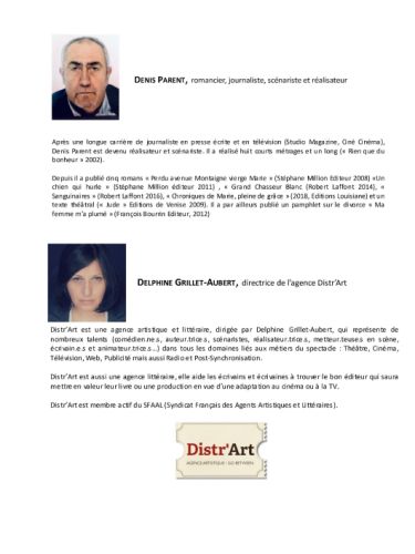 Ce dernier sera composé de David Kew, réalisateur, Denis Parent, scénariste, Delphine Grillet, directrice de Distr’art, Maëlle Mietton, comédienne et Alexia Goutanier, productrice. Tous désigneront le prix de la Saladelle (1 500 €), de la Ville (900 €), du film d’animation (450 €) et prix du public (450 €).