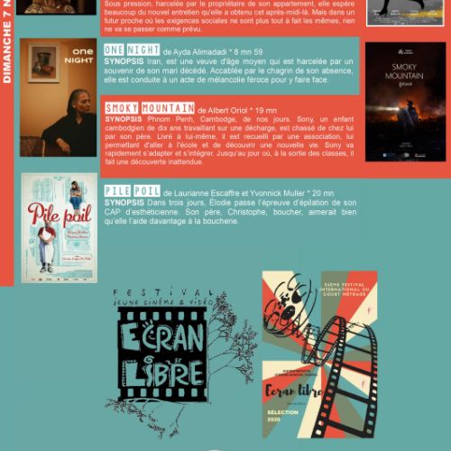 Durant trois jours, vendredi 5, samedi 6 et dimanche 7 novembre, Écran Libre présentera, au cinéma Marcel-Pagnol, une soixantaine de films en compétition, sous l’oeil avisé d’un jury de professionnels du cinéma et d’un jury de spectateurs. Les projections seront accompagnées d’animations, de tables rondes et de rencontres avec les réalisateurs.