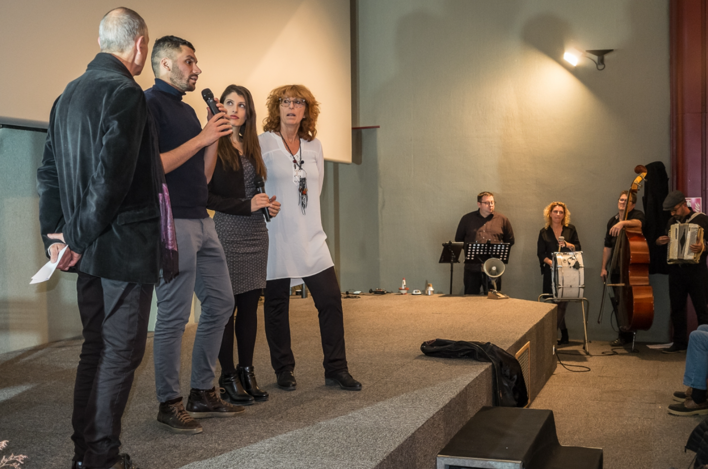 Le thème, la réalisation d’Alexandre Castagni et l’interprétation ont bouleversé l’assistance qui a été interpellée par l’échange avec la comédienne Eva Darlan qui s’est fait la porte-parole des femmes en souffrance. "Tout ce qui concerne les femmes me concerne. J’espère que vous vous souviendrez de l’urgence de faire pression pour faire évoluer les lois en faveur des femmes en détresse", a-t-elle conclu avec force. La projection du film lauréat du festival de Cervia en Italie dont la particularité est de présenter des films muets illustrés en direct par des musiciens a également emballé le public. Le Groupe gardois Signorina a accompagné, en live et sensibilité le film Trauma Industries de Jethro Massey, en présence des organisateurs Matteo Fusconi, responsable du centre culturel Scambiamenti et d’Alessandra Castorrini, membre du jury transalpin.